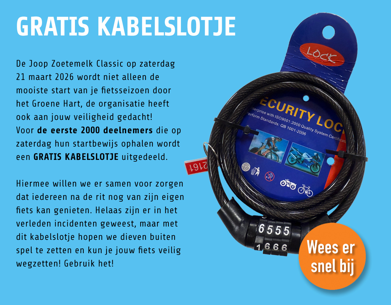 Of je nu kiest voor een ontspannen rit met vrienden of een serieuze test van je conditie, deze tocht biedt voor ieder wat wils. Samen trappen we het wielerseizoen af, geïnspireerd door de legendarische Joop Zoetemelk, die ook dit jaar weer persoonlijk het startschot zal geven.